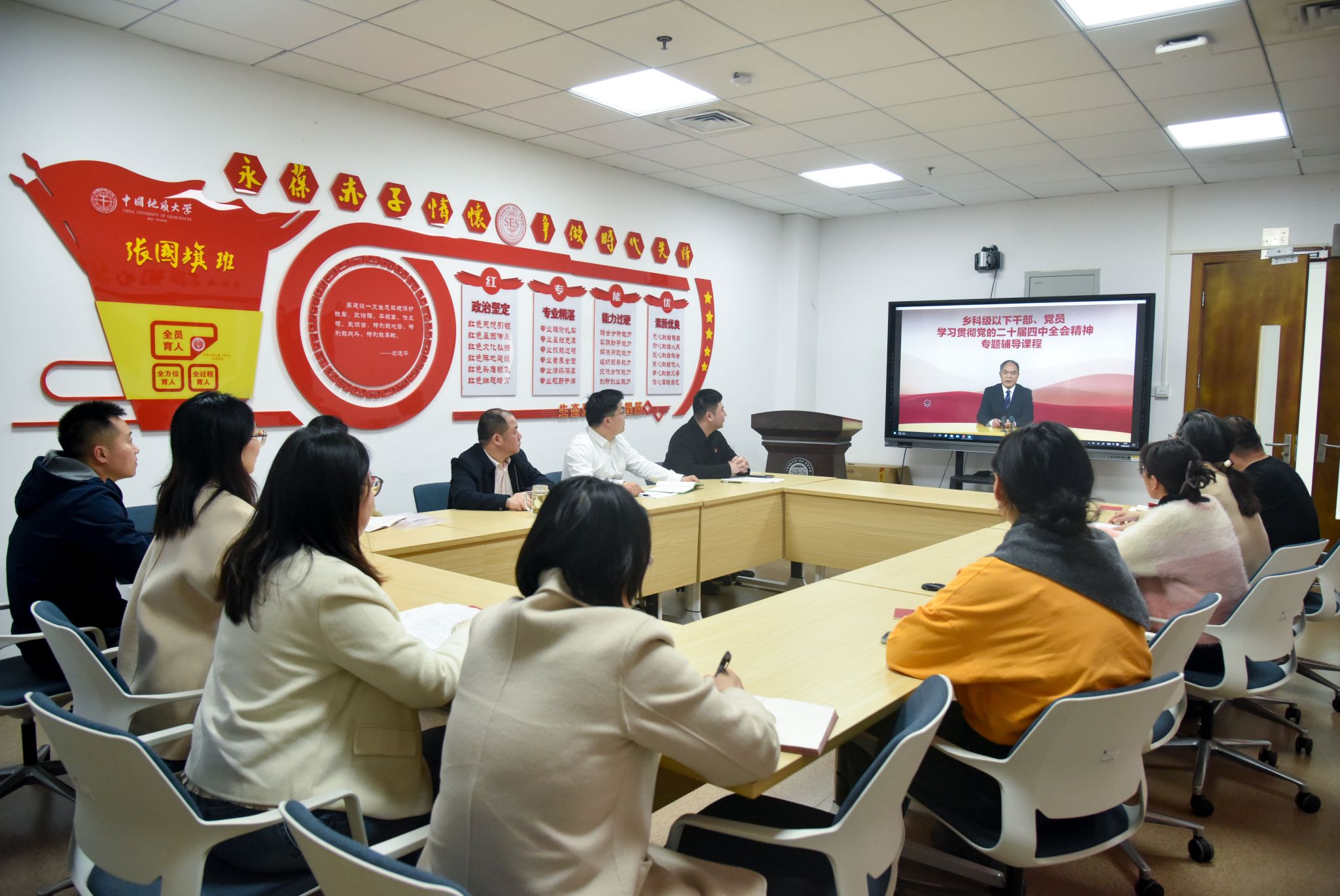 支部组织党员集中观看学习贯彻党的二十届四中全会精神专题辅导课程《“十五五”时期经济社会发展的指导思想、重大原则和根本保证》。