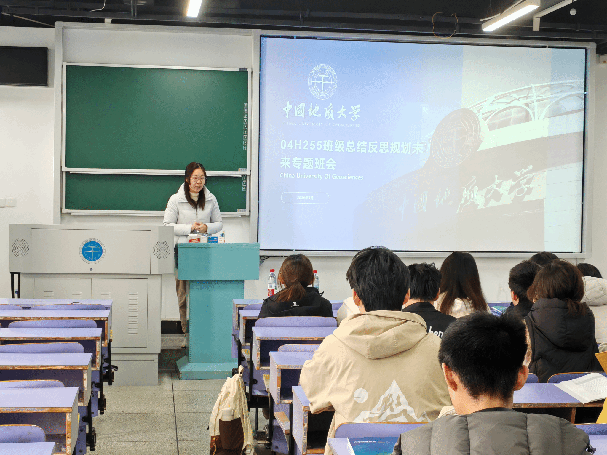 04H255班作为荣获多项集体荣誉的先进班级,班会系统复盘了建设成果。班主任刘丹青老师引导同学们尊重多元成才赛道,理性看待绩点,并围绕深度阅读、善用工具等提出成长建议。班委集体述职,优秀学生代表分享经验,展现了班级的凝聚力与活力。04H256班以“春启新程,共赴山海”为主题,从回顾、反思、目标、行动四个维度展开。会上,高数学习经验分享与班主任陈伟老师的针对性指导相结合,鼓励同学们以自律为基,平衡学业与实践,筑牢知识根基。
